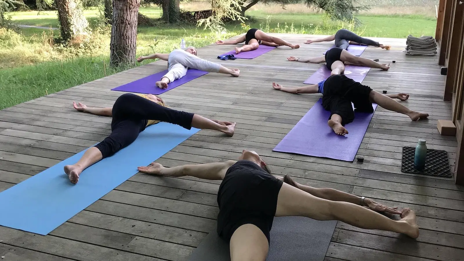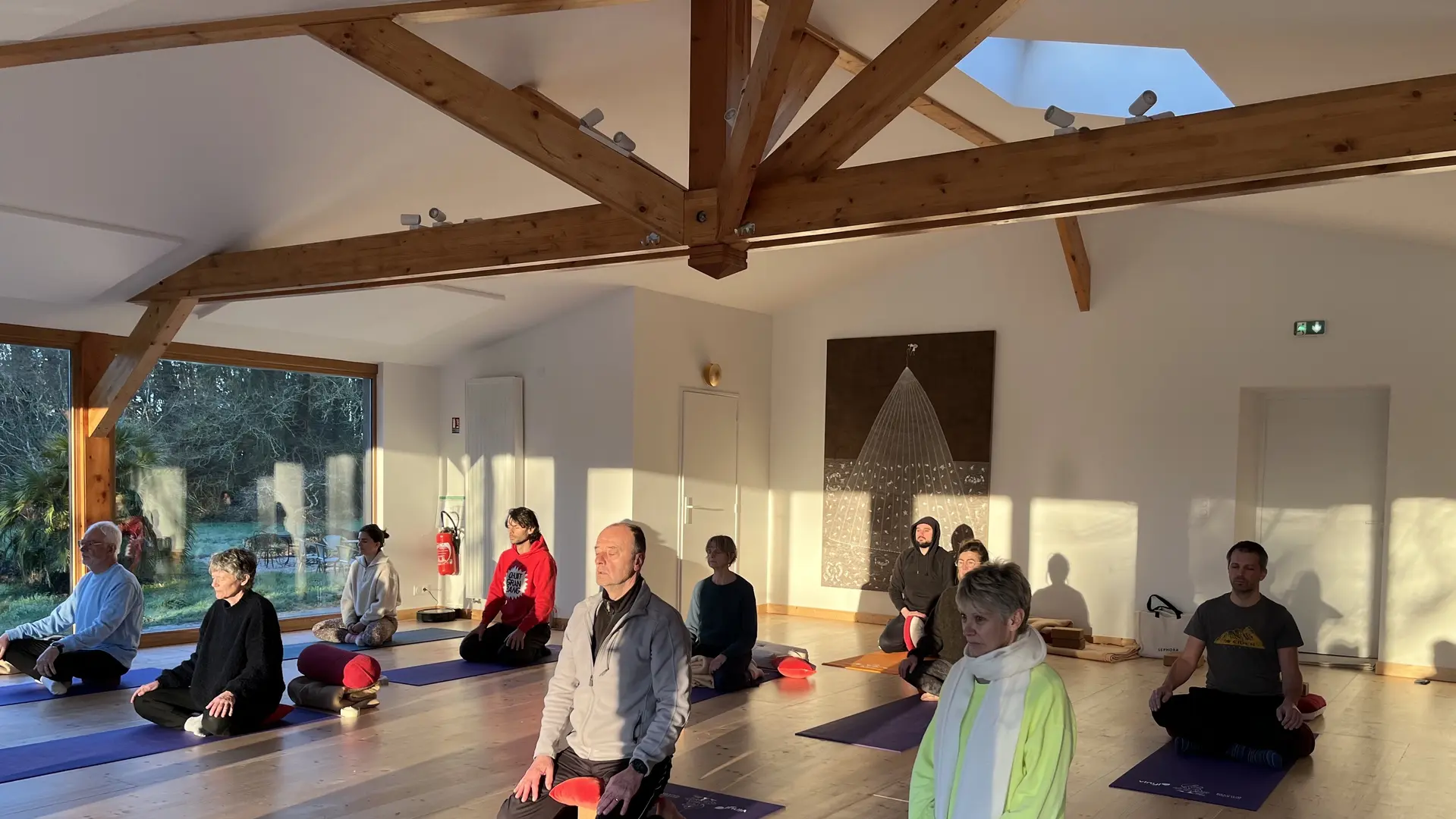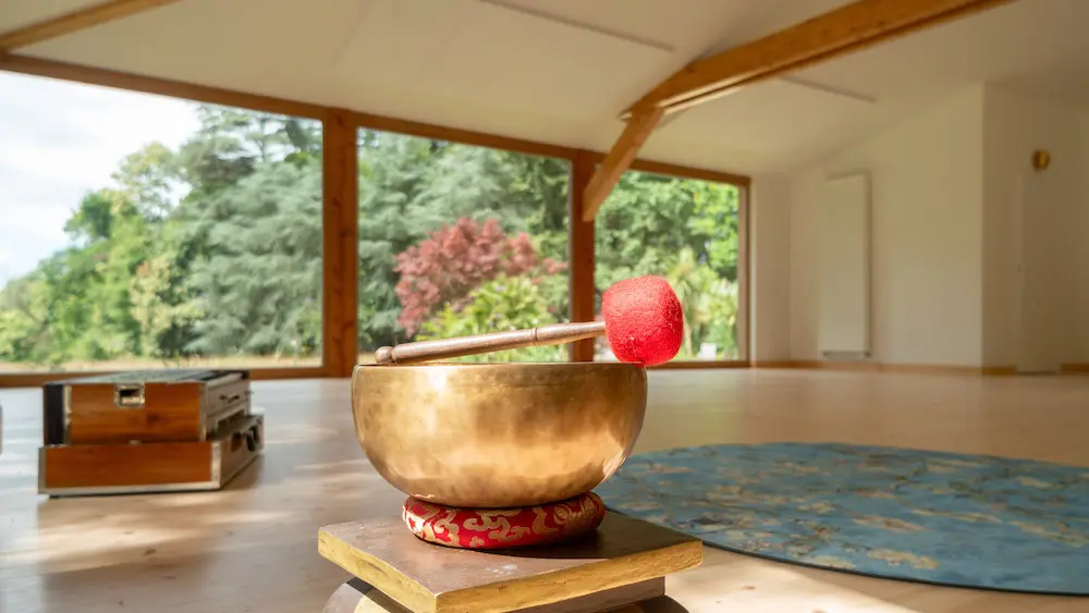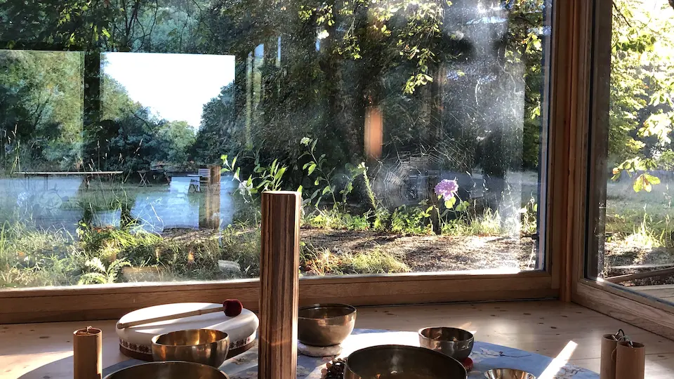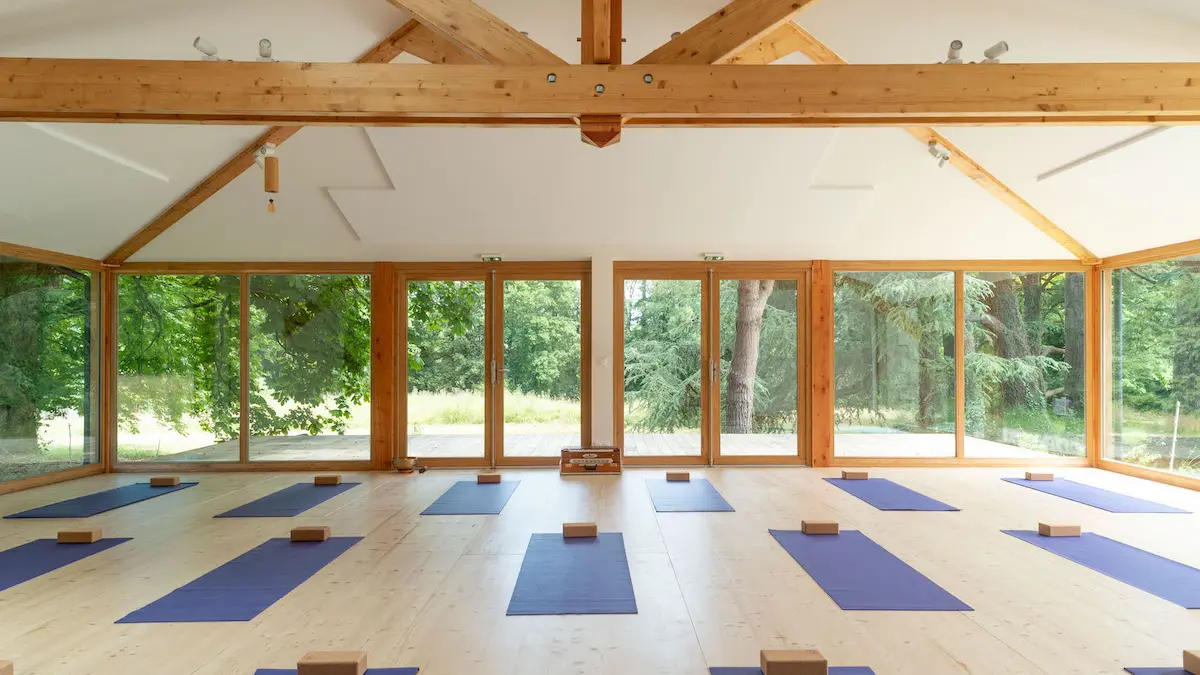 Espaces incarnés : notre écolieu dispose d'une magnifique salle de yoga de 108 mètres carrés construite en matériaux biosourcés, ainsi qu'une piscine à disposition lors des beaux jours, non chauffée pour respecter notre engagement envers l'environnement.