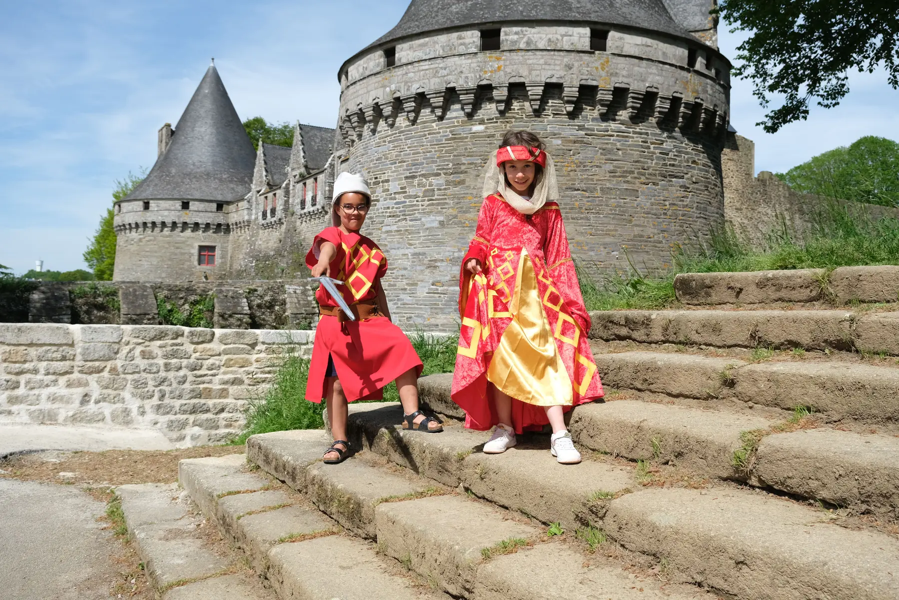 Pour faire découvrir le Moyen Âge aux enfants, rien de mieux qu’une visite en costume ! Habillés aux couleurs et blason des seigneurs de Rohan, filles, garçons et guide parcourront les ruelles étroites du quartier ancien de Pontivy, avant de terminer la visite au château. Dans ce lieu, ils s’exerceront au mur de boucliers et à la danse médiévale.