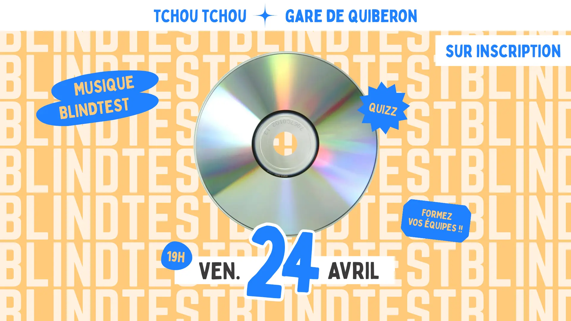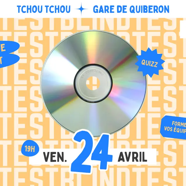 Vendredi 24 avril, formez vos équipes, chauffez vos oreilles et que le meilleur gagne !! Blindtest sur inscription : contact@tchoutchou-quiberon.fr Bières, cocktails & bonne humeur au programme !!