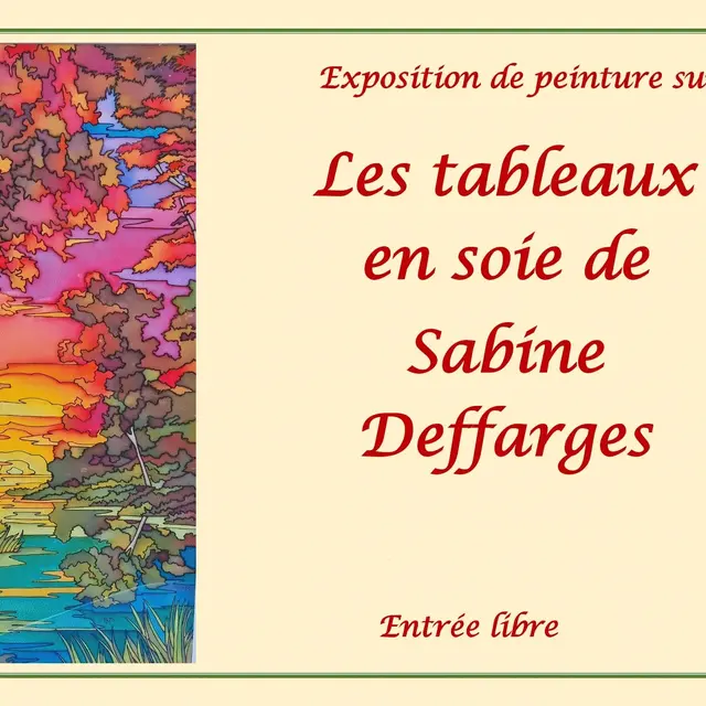 A travers cette exposition, l'artiste souhaite faire partager aux visiteurs son univers rempli de couleurs, les faire rentrer dans un monde où la lumière envahie les toiles. La nature, rêvée, recréée ou inspirée est la base de son travail. Elle aime particulièrement travailler les couleurs chaudes, qui lui permettent de composer des tableaux où les crépuscules sont flamboyants, où les automnes crépitent de mille feux. Mais elle aime aussi représenter la Bretagne, celle des petits villages côtiers qu'elle mélange dans des toiles un peu naïves avec toujours, en fond de mer, un bateau qui vole vers un horizon rêvé. Sabine espère pouvoir apporter un peu de poésie colorée aux visiteurs, que ses tableaux soient une invitation aux rêves, à la fantaisie de son imagination.