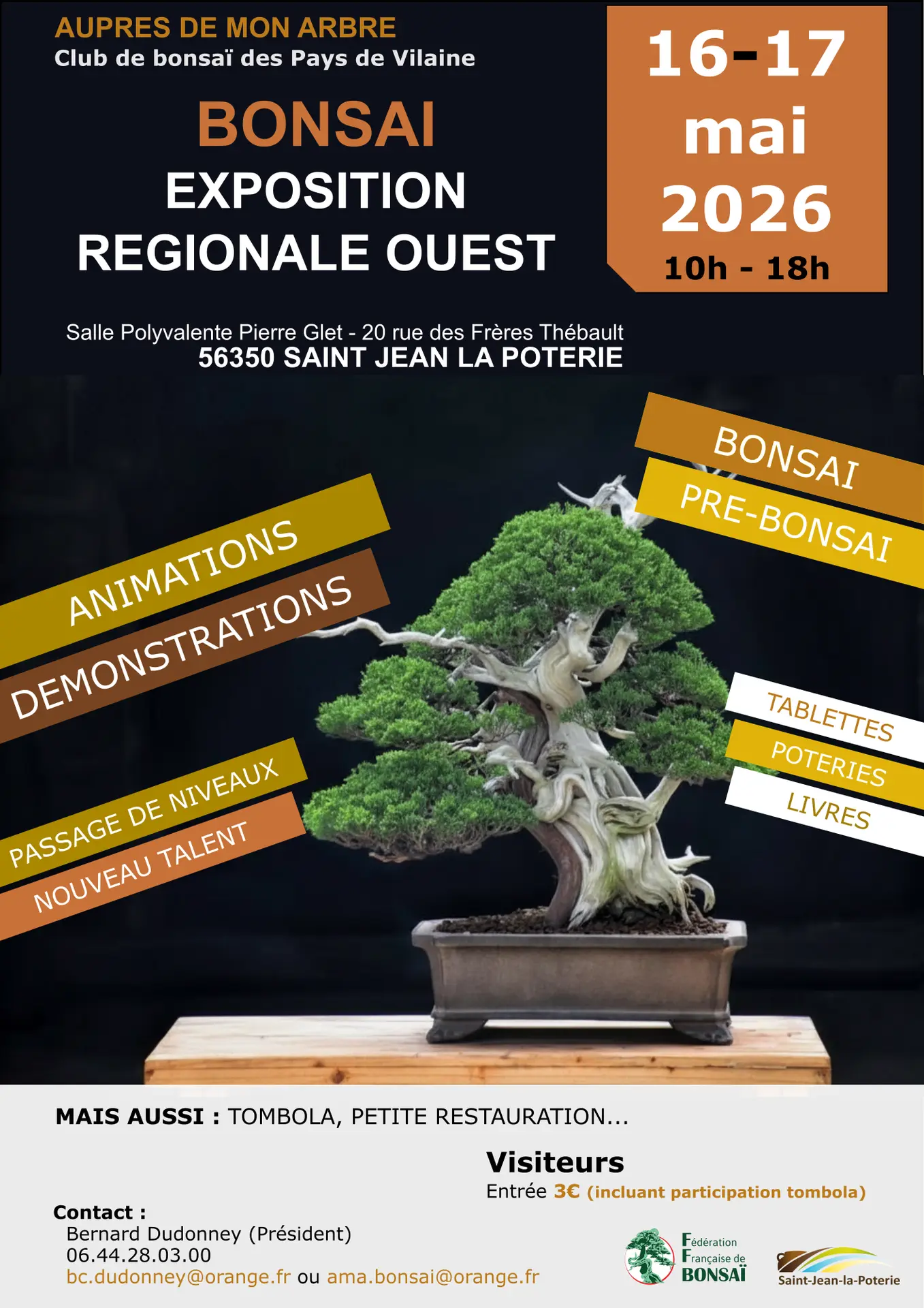 Auprès de mon Arbre, le club de bonsaï des Pays de Vilaine organise l'Exposition Régionale de Bonsaï, sous l'égide de la Fédération Française de bonsaï. Les arbres exposés viennent des clubs de Bretagne, des Pays de la Loire et du sud de la Normandie