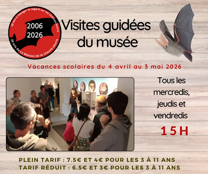 Durant les vacances de printemps, découvrez l'univers des chauves-souris accompagné par notre guide nature. Au fil du parcours, vous en apprenez plus sur ce petit mammifère fascinant. Vous terminez la visite par l'observation de la colonie de chauves-souris située dans les combles de l'église, grâce à nos caméras infrarouges.