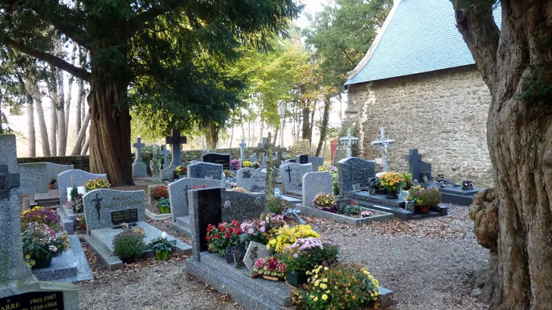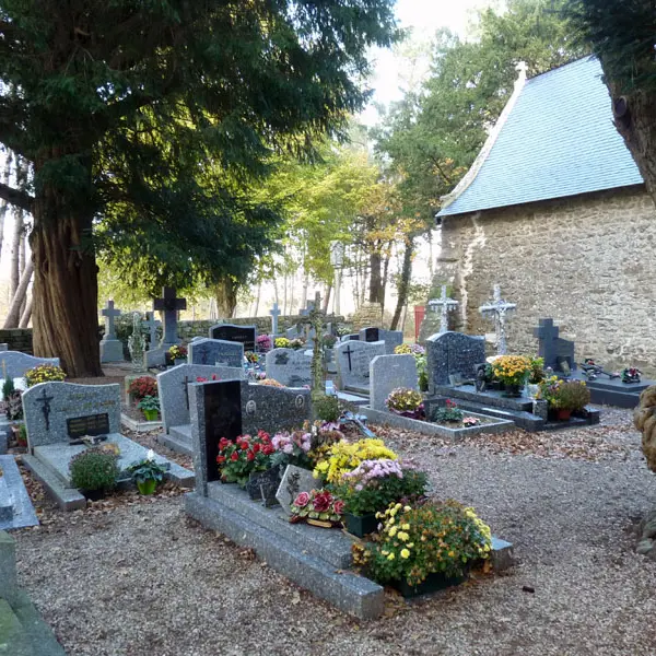 Un petit enclos abrite le cimetière (qui accueille encore aujourd'hui les dépouilles des fidèles), la chapelle, un petit menhir arrondi et de vieux ifs imposants. La chapelle est remarquablement rénovée et entretenue. L'environnement verdoyant appelle au calme et à la détente (des tables de pique-nique sont à votre disposition sous les grands arbres). Un pardon a lieu le dernier dimanche d'août. La chapelle est ouverte le dimanche de 16h à 18h en juillet et août, et tous les jours pendant les fêtes de fin d'année de 14h30 à 18h. Sinon, demander les clés à Mme Haute (02 97 26 91 27), à 2km à la Grand Ville (de Pleucadeuc, reprendre la route de Bohal).