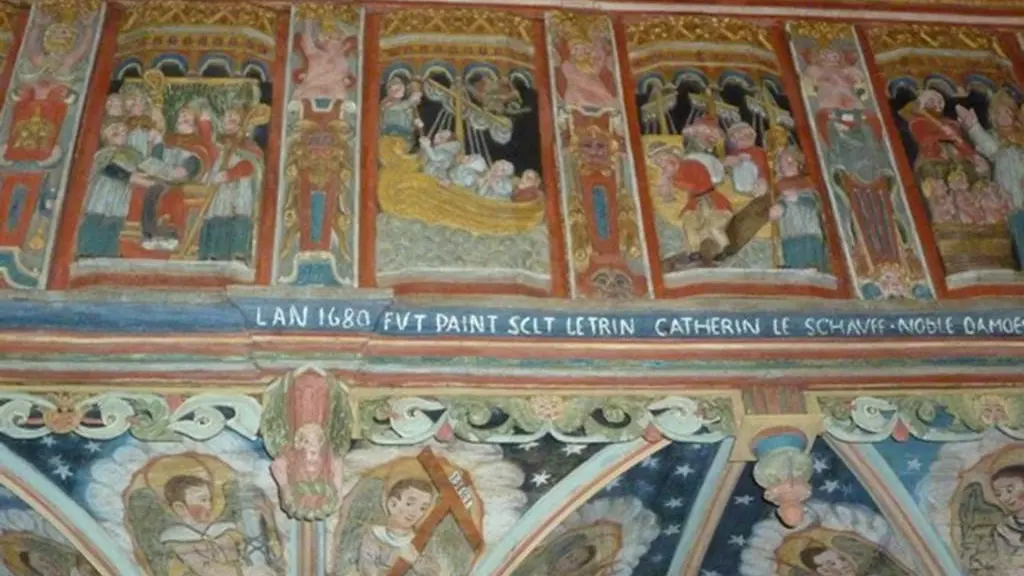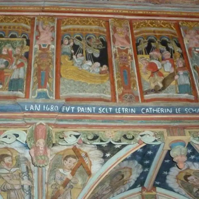 Datée du 16ème siècle, la chapelle Saint-Nicolas est un édifice isolé en campagne construit selon un plan en croix latine. Elle est dotée d’un chevet plat percé d’une grande fenêtre axiale. On accède au clocher à flèche octogonale grâce à une tourelle d’escalier hexagonale qui se termine en lanterne.A l’intérieur, le transept et la nef sont à vaisseau unique. La nef est séparée du chœur liturgique par un magnifique jubé commandé vers 1566 par les seigneurs du Dréors dont on pouvait voir les armes sur le pignon ouest jusqu’à la Révolution. Ce jubé, peint en 1580, repeint en 1768, se compose, d’un côté, de neufs panneaux sculptés illustrant des scènes de la vie du saint patron des lieux : sa naissance et sa mort mais aussi la guérison d’un aveugle, le concile de Nicée, le sauvetage d’un navire en péril, le miracle de la multiplication des grains, la résurrection des trois enfants mis au saloir, le châtiment d’un débiteur malhonnête et la résurrection d’un jeune homme. L’autre côté représente les apôtres. De la poutre de gloire, ne demeure que la statue du Christ. A ce jour, il ne reste que treize jubés non transformés en Bretagne. La chapelle recèle une autre particularité : une roue à carillons. Cette dernière appartient à un ensemble de quinze pièces disséminées sur tout le territoire breton. Les roues à carillons, très courantes au Moyen-Age, jouaient un rôle cultuel durant l’Élévation. Cependant, elles pouvaient également servir lors de pratiques superstitieuses. La chapelle Saint-Nicolas est comparable à celle de Saint-Hervé de Gourin (1518-1536).