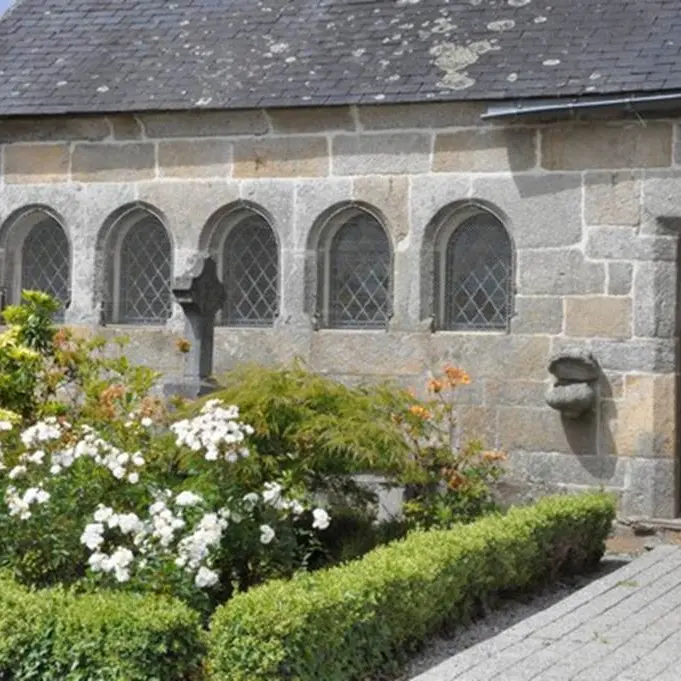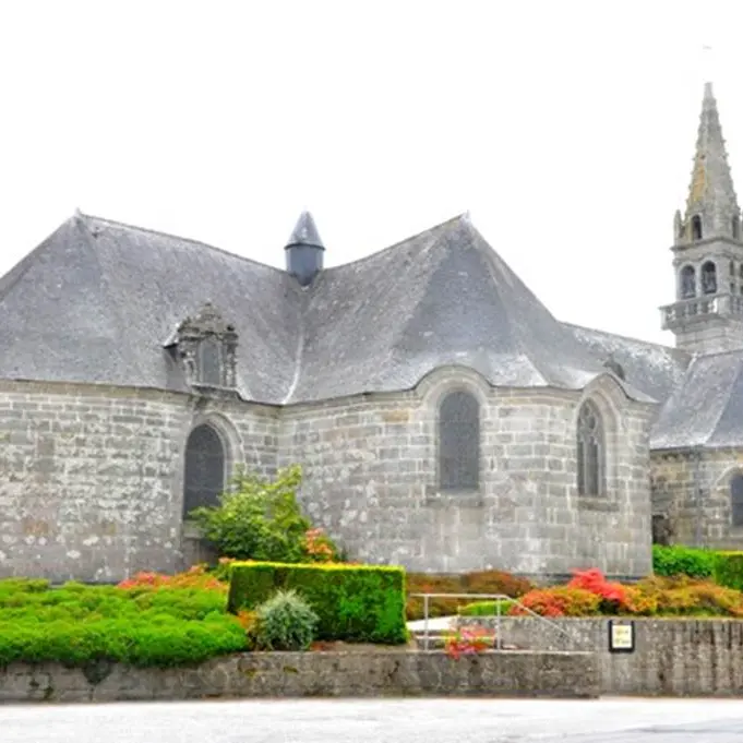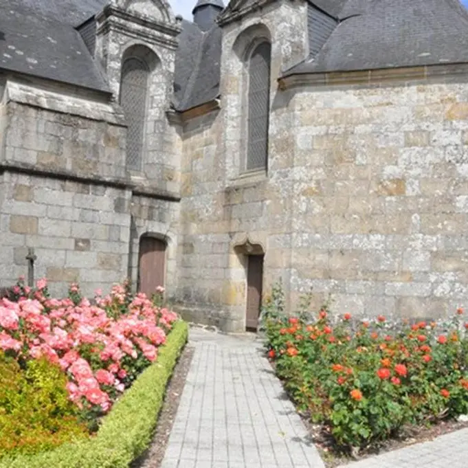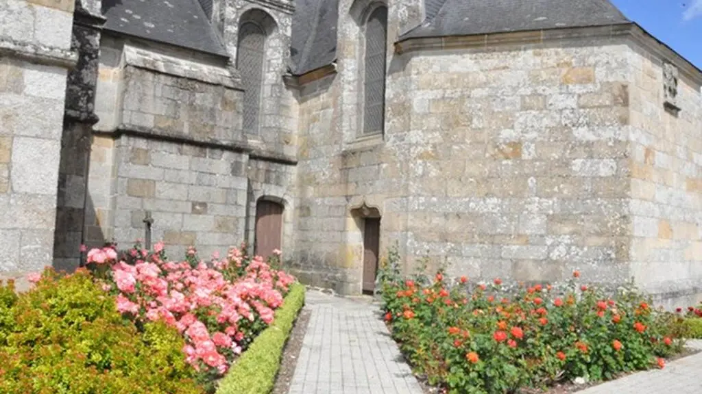 L'église était jusqu'en 1839 sous l'invocation de Saint Rival. Le cahier paroissial signale comme seigneurs prééminenciers les sieurs de Guidfoss et de Nouay. De nombreux écus martelés ou effacés sont visibles en différents endroits de l'église. Au chevet et sur la chapelle des fonts figurent les armes des Rohan, princes de Guémené.