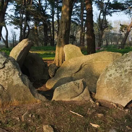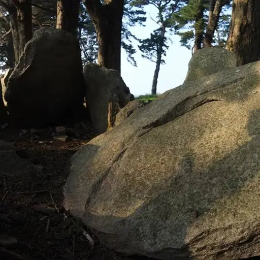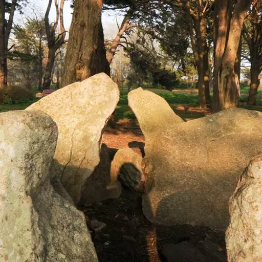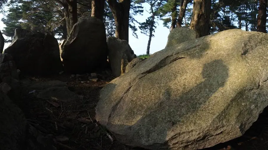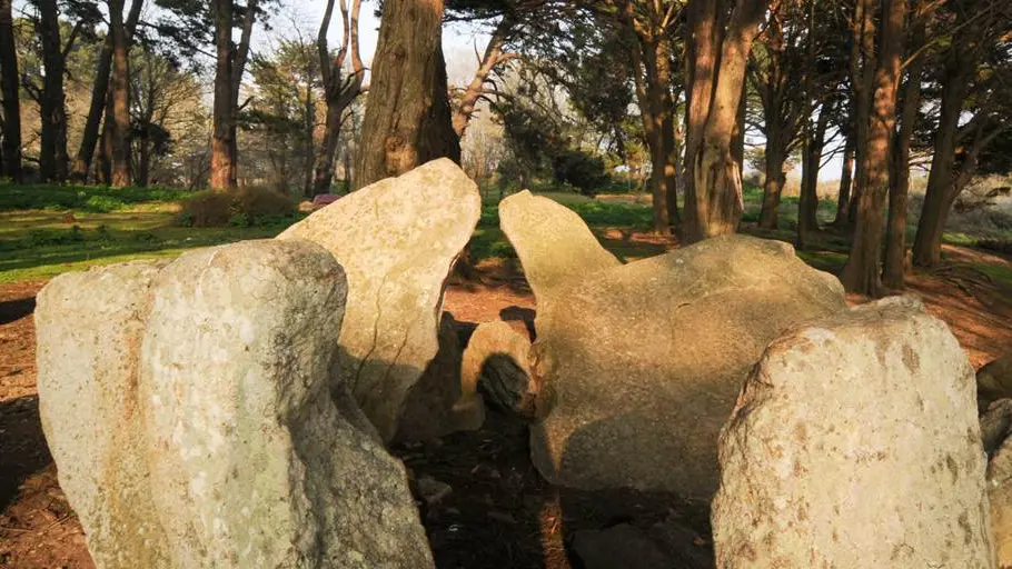 Un ensemble de dolmens et de talus particulier.Sur l’extrémité Sud de l’Ile se dresse un ensemble mégalithique singulier. Trois dolmens ruinés sont enchâssés dans un grand talus de pierre. Ces trois tombes ont été fouillées en 1884, et ont livré des poteries, des fragments de silex et des haches, aujourd’hui conservés au musée d’histoire et d’archéologie de Vannes. Ces objets permettent d’attribuer ces monuments à la période néolithique, soit entre 5000 et 2500 avant JC.Le dolmen central, qui est le mieux conservé, possède quelques gravures très érodées. Il apparaît autour de cet ensemble plusieurs pierres éparses qui pourraient former les ruines d’autres structures mégalithiques.