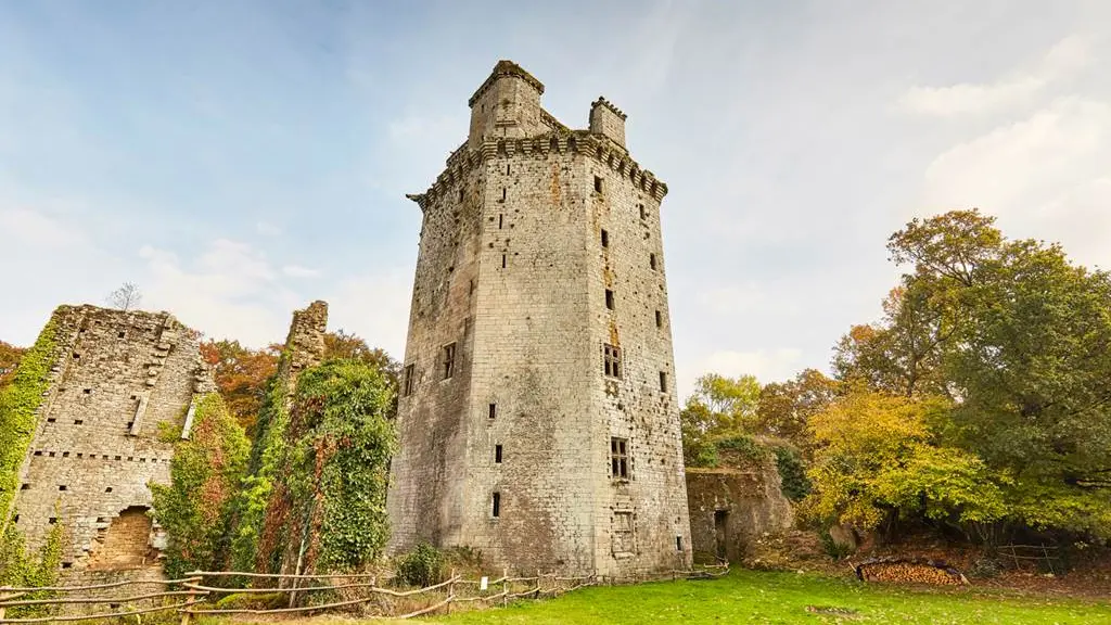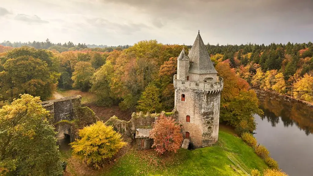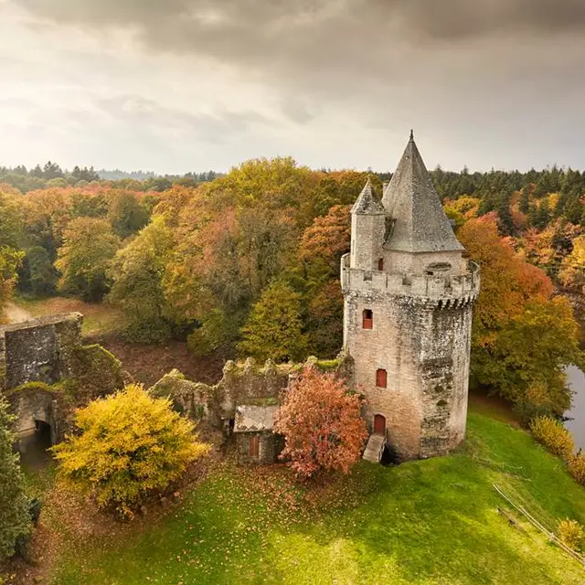 Surgissant au milieu des bois, les ruines monumentales du donjon du XIVème siècle et la majestueuse tour ronde du XVème siècle constituent de par leurs dimensions colossales et de par la richesse de ses pierres une merveille d'architecture médiévale.