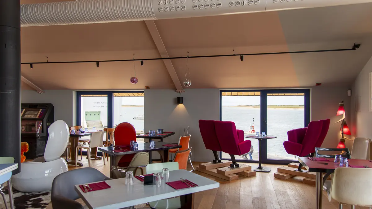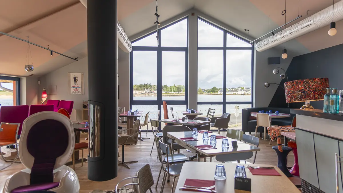 Restaurant de fruits de mer avec vue panoramique sur la barre d'Étel. Au menu : fruits de mer, poissons fumés BIO, desserts maison, cocktails, sélection de vins, suggestions de la semaine avec un plat végétarien et un plat de viande. Ambiance rétro, décontractée et chaleureuse.