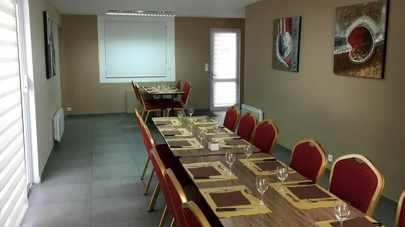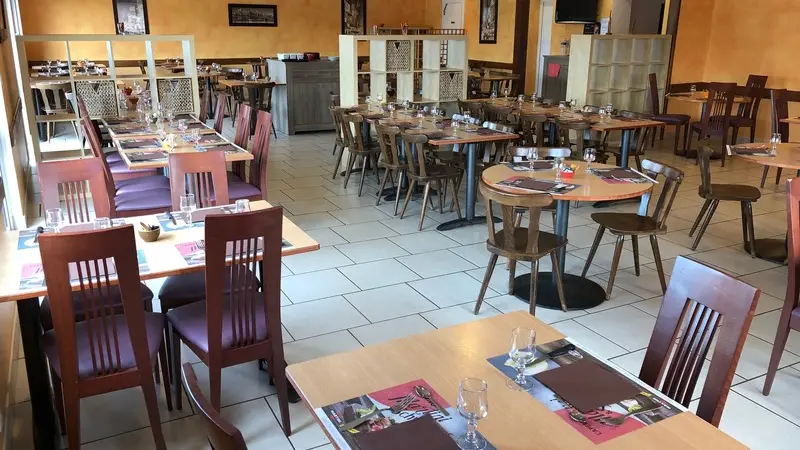 Nous disposons de deux grandes salles climatisées de 80 et 120 couverts. Une salle privative pour groupe (environ 25 couverts) ainsi qu'une terrasse l'été. Nous vous accueillons du lundi au jeudi de 12h à 14h30 et le soir de 19h15 à 21h30 ainsi que le vendredi midi.