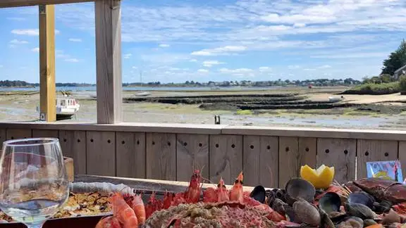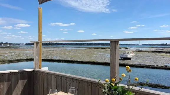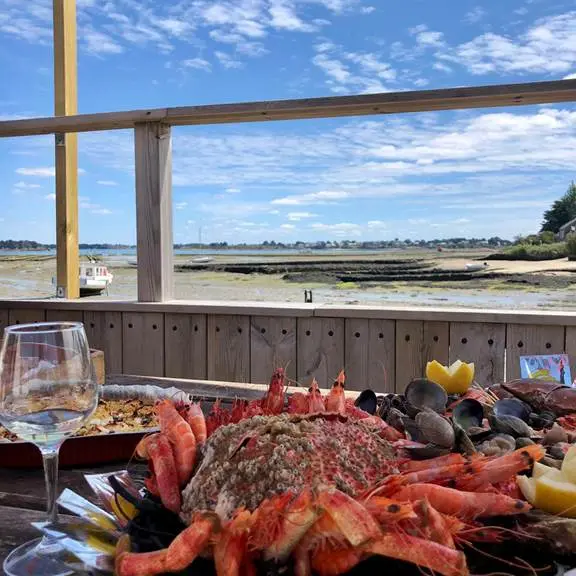 Site de dégustation les pieds dans l'eau avec vue imprenable sur le golfe du Morbihan. Au menu huîtres et coquillages avec possibilité de déguster plateau de fruits de mer et crustacés, en commandant la veille.Menu disponible en allemand.Pour vos commandes à emporter, contactez notre point de vente ouvert du 07/02 au 06/03; du 11/04 au 30/09; du 24/10 au 06/11 et du 19/12 au 31/12.