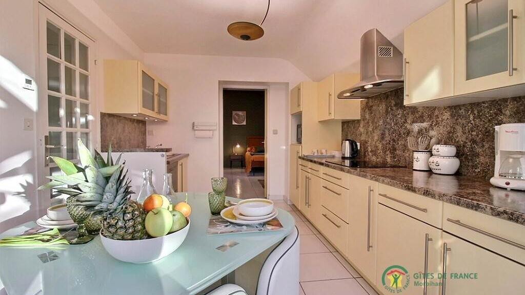Vous apprécierez la vue sur le Golfe du Morbihan. Le gîte dispose d'une entrée indépendante et d'une place de parking privative. Le gîte ne dispose pas de congélateur ni de machine à laver, mais les propriétaires se proposent de laver votre linge gratuitement.
