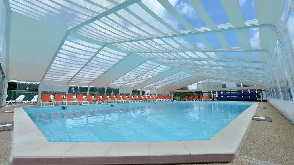 Niché parmi 4 hectares de terrain arboré, l’établissement se situe à quelques pas de la mer et de la belle plage de Damgan. Le centre-ville de cette jolie station balnéaire du Morbihan s’avère tout aussi proche, de même que le sentier côtier et de nombreuses pistes cyclables. Bénéficiant de spacieux emplacements et de mobil homes (2-6 pers) équipés Grand Confort avec terrasse (couverte pour certains), il se révèle idéal pour des vacances entre amis ou en famille. Les parents apprécieront notamment la présence d’un coin bébé dans les sanitaires et les multiples activités sur place . Le camping dispose en effet d’un espace aquatique (piscine chauffée couverte avec pataugeoire, toboggans extérieurs) et de beaucoup d’espace pour les loisirs en plein air : basket, pétanque, cerf volant… Il abrite également une grande salle de jeux (pingpong, billard, flipper, baby foot) afin de pouvoir s’amuser, quelle que soit la météo.