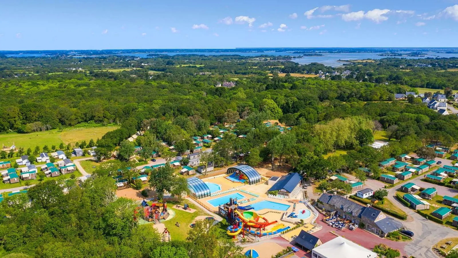 Le centre aquatique du camping se compose d’un bassin de 180 m² couvert, d’une pataugeoire intérieure avec jeux aquatiques, d’un grand bassin extérieur, d’une pataugeoire ludique et des toboggans dont le célèbre Spacebowl !