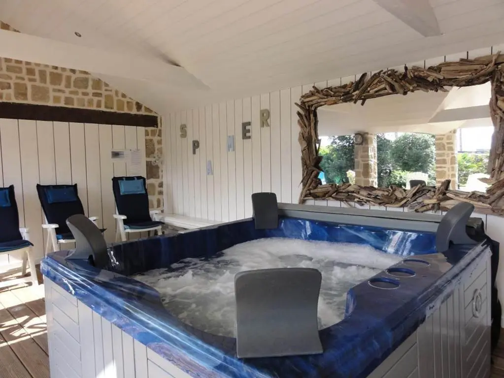 - Au 1er étage: 5 chambres (2 lits en 140, 1 lit en 160 et 2 lit en 90), une salle d'eau et un wc séparés. L'espace détente de 50 m2 non chauffé est gratuit et à votre usage exclusif avec une jolie vue sur le jardin clos . A l'extérieur, vous profiterez de cet espace bien-être situé à 15 mètres du gîte (spa de 4/5 places utilisable toute l'année gracieusement) avec une salle de jeux (baby-foot, table de ping-pong et un jeu de air hockey). Jardin clos avec terrasse équipée, parking pour 2 véhicules et garage. Ce gîte est mitoyen à 2 autres logements.