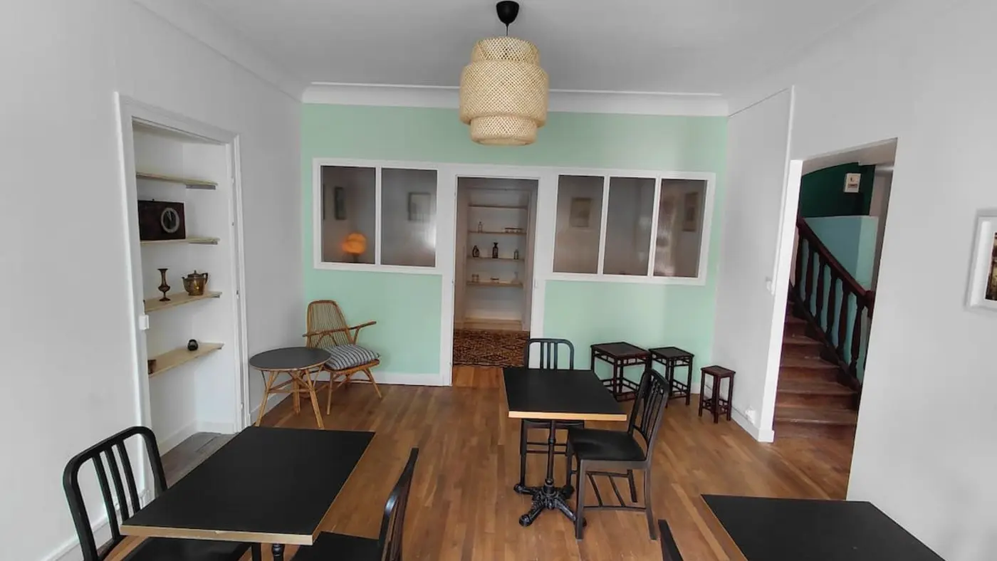 Les sanitaires et salles de bain sont communs, offrant une ambiance conviviale dans cette grande maison de caractère.