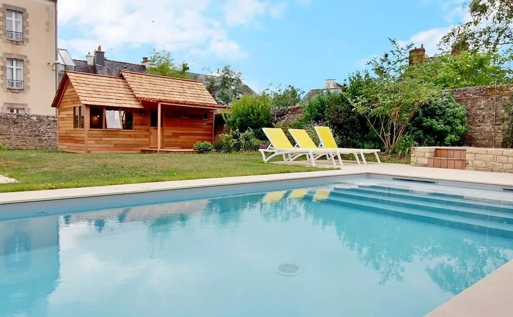 La cabane est située sur le terrain des propriétaires avec la piscine en commun.