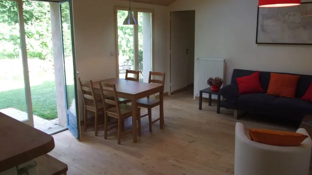 Ils possèdent chacun leur propre jardin et accès privatifs et sont complètement séparés. Ils peuvent néanmoins aussi être regroupés en un seul gîte pour 10 personnes. En effet, nos gîtes sont modulaires et peuvent communiquer, si besoin, via un sas avec double portes phoniques qui peut réunir les deux pièces à vivre (ce sas est inaccessible et parfaitement isolé si les gîtes sont loués séparément).