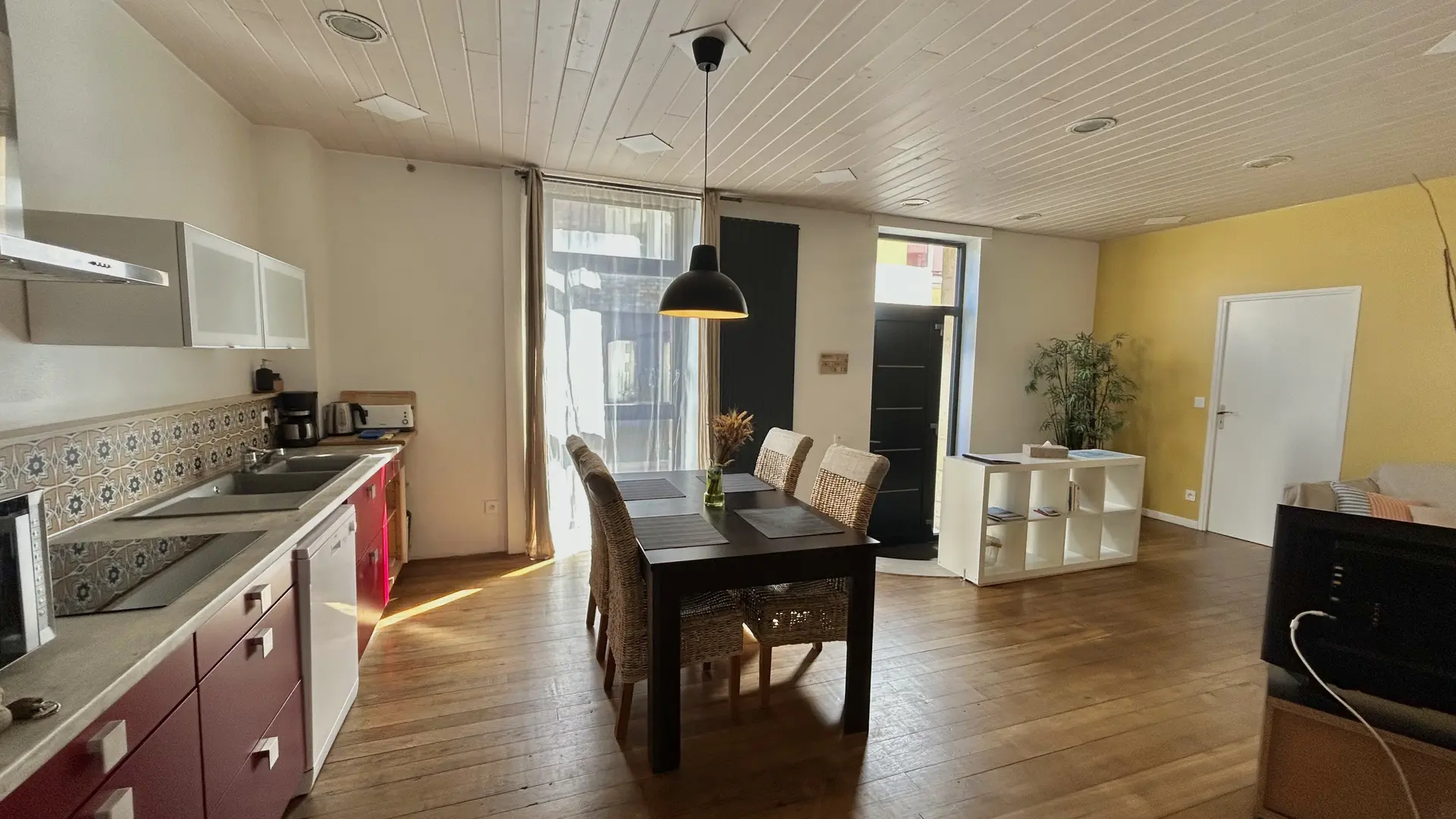 Situé au rez-de-chaussée de la Maison, un vaste appartement de 70 m2 pour 4 personnes, indépendant avec ses 2 entrées, l’une côté rue et l’autre côté jardin (par l’accueil de la maison d’hôtes).