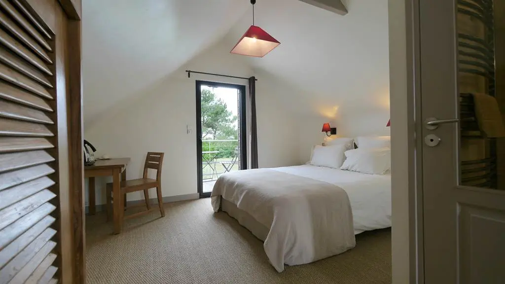Surplombant l’anse du pô à Carnac sur un parc de 6000 m2 , la villa Mane Lann vous offre un point de vue unique sur la baie de Quiberon.Son style contemporain, ses appartements grand confort donnant sur la piscine et le spa vous feront passer un séjour d’exception.Lumineux, à la décoration soignée, le Saint Co est idéal pour un couple.Il dispose d’un lit de 160, d’une salle de bain privative style « atelier d’artiste » et wc séparé.au Rdc, séjour avec cuisine équipée, séjour et wc, terrasse. Wek-end acceptés de mi-octobre à fin mars, hors vacances scolaires.