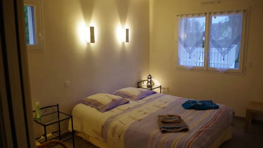 Vous profiterez de 3 chambres, dont une au Rez de chaussée ( lit 160) et deux à l'étage ( lits 140) , et d'une grande mezzanine aménagée en coin lecture ou espace pour les enfants ( livres et jeux à disposition). Chaque salle de bain est équipée d'une vasque et douche. Vous disposez d'un WC séparé au rez-de-chaussée.