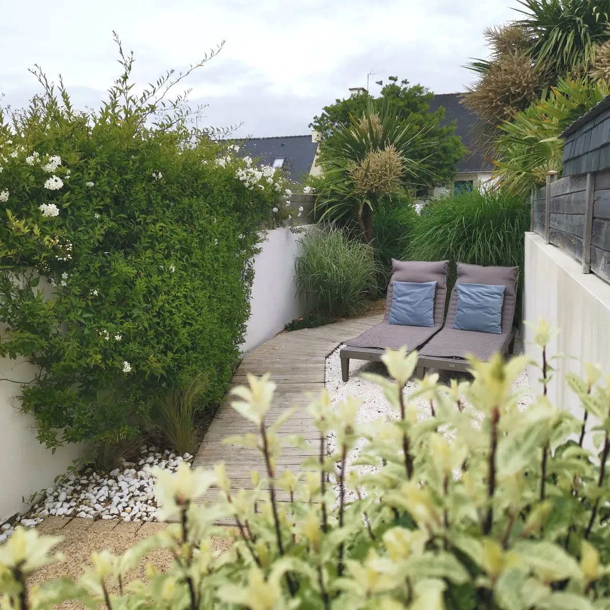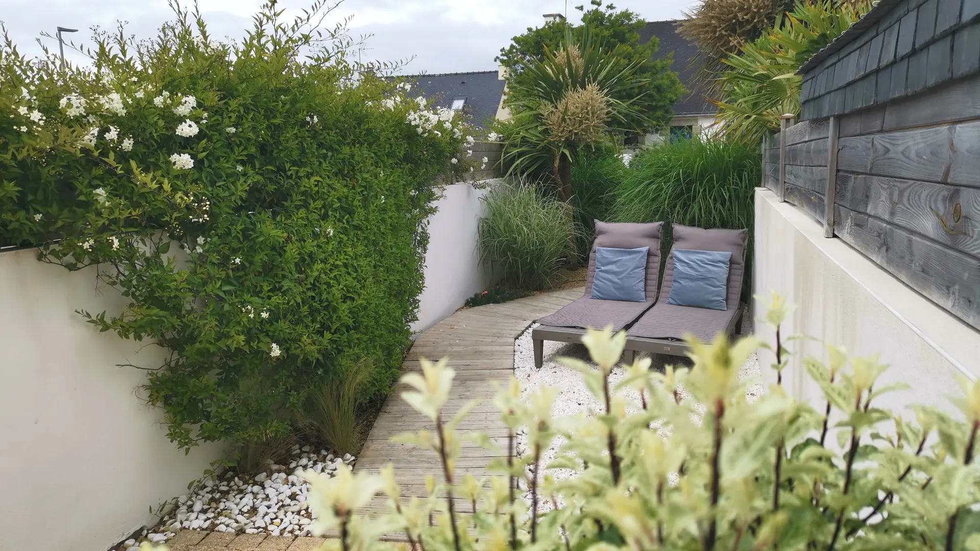 A l'extérieur, vous profiterez d'une 1ère terrasse en bois sans vis-à-vis de 12 m² et à l'avant de la maison, d'une cour close de 10 m² avec une seconde terrasse et un petit jardin clos aménagé d'un salon de jardin, 2 transats et un barbecue. Places de parking dans la rue devant le gite (gratuit).