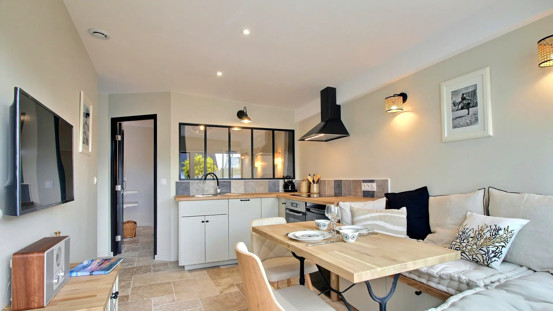 De plain-pied, ce joli logement de 30 m2 vous offre une pièce de vie avec cuisine, séjour, et salon. Vous disposerez d'une chambre, (1 lit king size180x200) avec une salle d'eau attenante (douche à l'italienne) et d'un wc séparé.