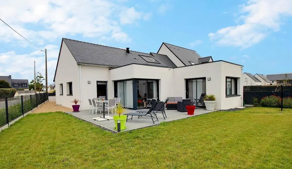 Cette belle et grande maison contemporaine est idéalement située à proximité des commerces. Aménagé de plain-pied, le gîte vous offre: une grande pièce de vie avec cuisine équipée, séjour et salon avec de belles baies ouvrant sur la terrasse exposée sud/ouest. Vous disposerez aussi de 2 chambres (2 lits en 140), d'une salle d'eau, d'un wc séparé avec lave-mains et d'une deuxième salle d'eau avec wc. Un espace buanderie est à votre disposition ainsi qu'un garage. Configuration idéale pour une famille ou 2 couples souhaitant séjourner ensemble. A l'extérieur, vous apprécierez le grand jardin clos avec une belle terrasse équipée. Autres places de stationnement possibles devant le gîte.