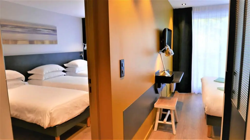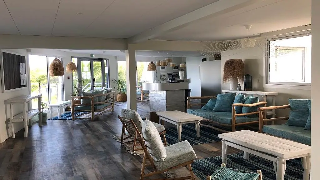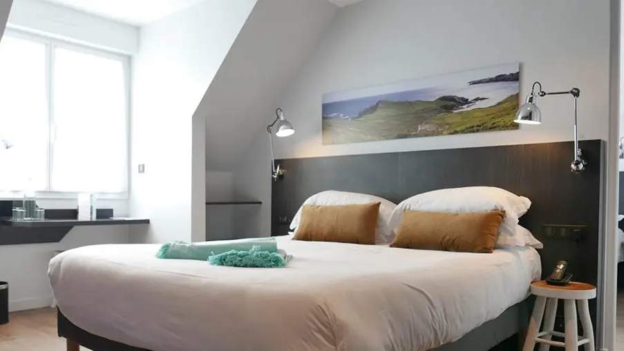Le Cardinal, hôtel saisonnier, ouvre ses portes de mi-avril à fin septembre : ses 63 chambres ont été rénovées en profondeur, dans un esprit néoclassique de bord de mer, ambiance sardinerie. Métal, bois, verrières, teintes naturelles inspirées des lumières belliloises.