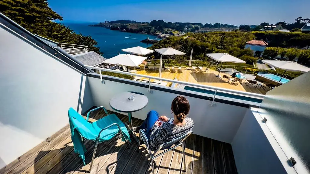 Découvrez un hôtel de charme à Belle Ile avec vue mer ou vue jardin. Profitez de sa piscine chauffée, de son sauna et de son jacuzzi face mer et de sa terrasse avec une vue panoramique sur la mer et sur la côte de Belle-Ile. Le Port de Sauzon, à 2 minutes à pied, est l'un des lieux enchanteurs de Belle-Ile.