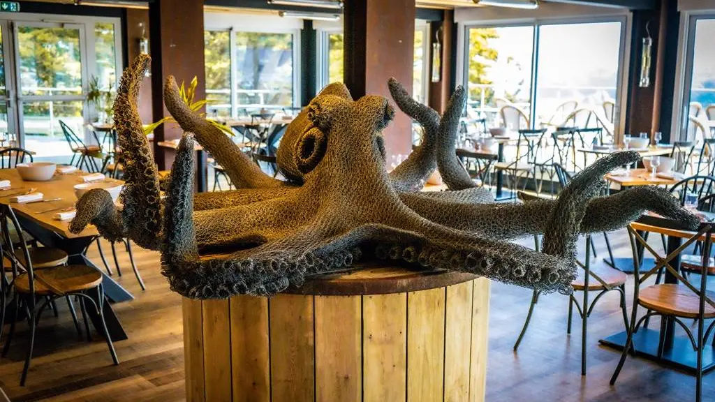Depuis les hauteurs de la pointe Cardinal, le dépaysement est assuré dans notre salle lumineuse qui offre une vue magnifique sur l'entrée du port de Sauzon. En cette fin de saison 2022, le Nautilus entame une profonde réflexion pour préparer sa transformation afin de limiter son empreinte environnementale :